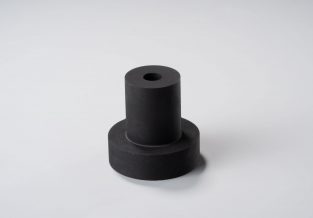 50mm厚の天然ゴムを外径φ50mmのツバ付形状に加工し、内径φ10mmの中抜き加工しています。
